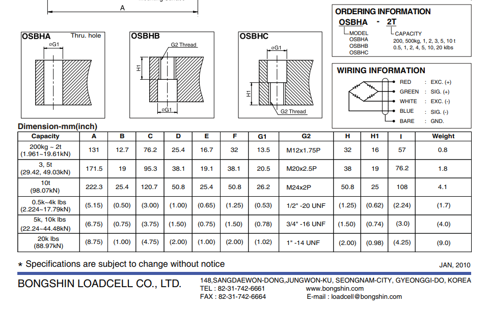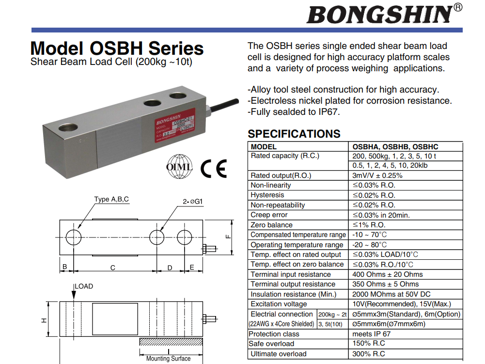 IKr廣州南創電子科技有限公司奉信稱重傳感器OSBH系列參數圖:IKr廣州南創電子科技有限公司