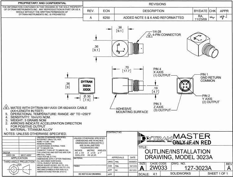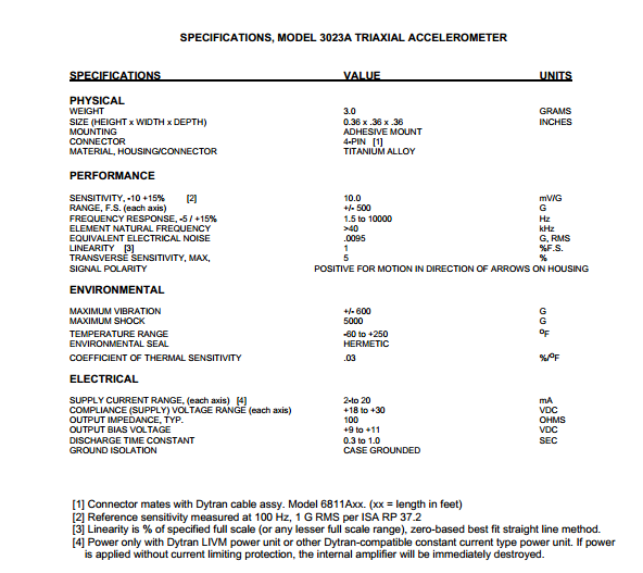 美國Dytran 3023a加速度傳感器技術參數圖: