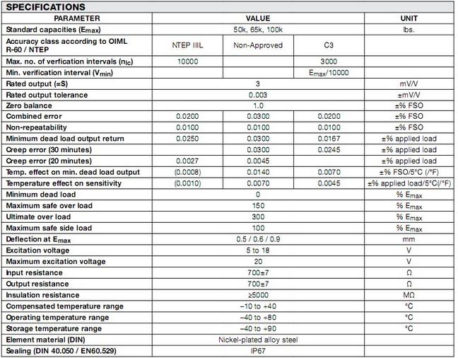 21607: 5223-B10-100K-40P1 100,000 lb 40ft RTI 3mV/V 700 OHM WW NTEP IIIL 10 M FM