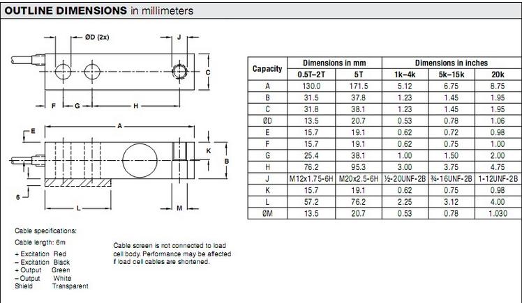 21470: Load Cell,SBM 363-B10-2K-20P1 2,000 lb 20ft RTI 3mV/V 350 OHM WW NTEP IIIL 10 S FM