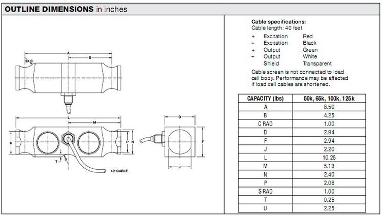 21607: 5223-B10-100K-40P1 100,000 lb 40ft RTI 3mV/V 700 OHM WW NTEP IIIL 10 M FM