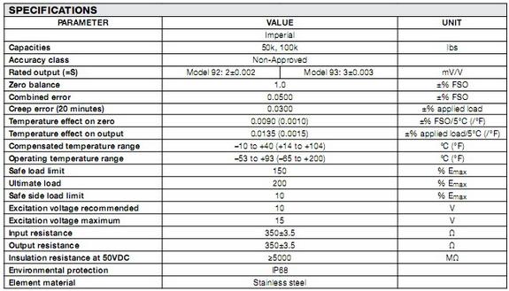 產品名稱:Vishay Revere稱重傳感器93-100KLBS