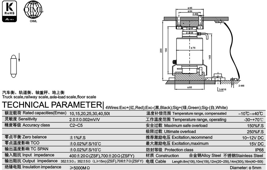 柯力ZSFY-A-50T稱重傳感器功能特點