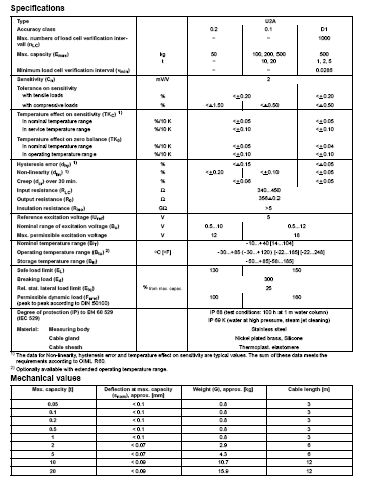 德國HBM U2A/1T稱重傳感器技術參數: