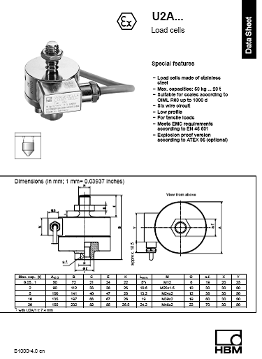德國HBM U2A稱重傳感器系列所有型號: