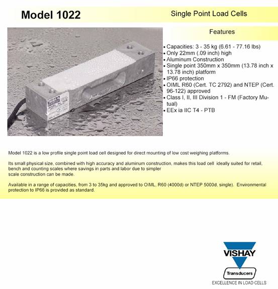 描述:1022是為低成本稱重秤設計的單點式傳感器。其緊湊的外形尺寸以及較低的成本適用于零售秤、計價秤和計數秤。