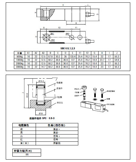 瑞士梅特勒托利多SBC-0.5稱重傳感器具體型號量程及特性:
