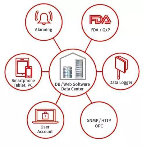除此之外,該系統(tǒng)還符合GMP/GLP/GDP、FDA 21 CFR Part 11、EN 12830等標(biāo)準(zhǔn),可生成報(bào)告、PDF圖表、統(tǒng)計(jì)。另外,系統(tǒng)能夠通過(guò)語(yǔ)音電話、短信或電子郵件報(bào)警通知,并配備有服務(wù)器或基于云的軟件,可適用于智能手機(jī)和平板電腦。