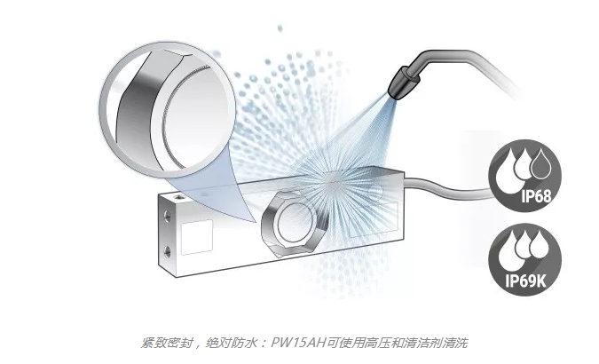 •   緊致密封的PW15AH稱重傳感器可用于更加苛刻的工業區域,如高壓清洗等。防護等級為IP68/69K,永久防潮