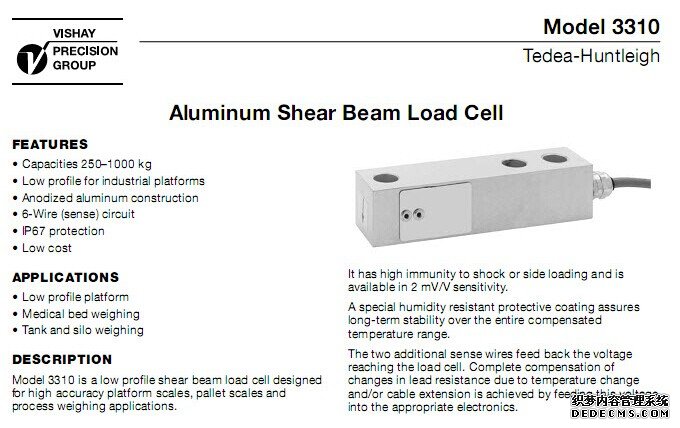 美國Tedea 3310稱重傳感器現貨、價格、產品資料、圖片、貨期、發貨方式、技術參數