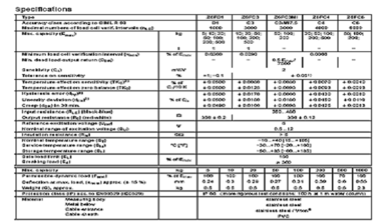 -Z6稱重傳感器有多種不同的型號(Z6FD1, Z6FD3, Z6FD1MI, Z6FC4, Z6FC6) 并有不同的精度等級。