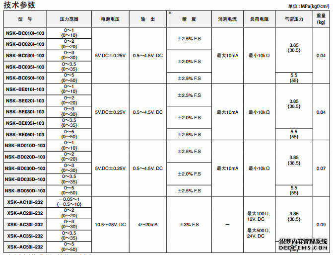 日本鷺宮NSK-BD030D-103壓力傳感器產品技術參數圖:QXG廣州南創電子科技有限公司