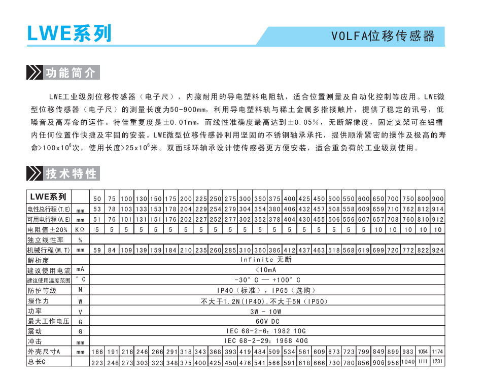 德國Volfa LWE-50位移傳感器更多產品詳細資料請點擊Volfa位移傳感器進入頁面可查找Volfa傳感器型號、Volfa位移傳感器技術參數選型資料,以及德國Volfa電子尺具體安裝技術指導信息。KWe廣州南創電子科技有限公司